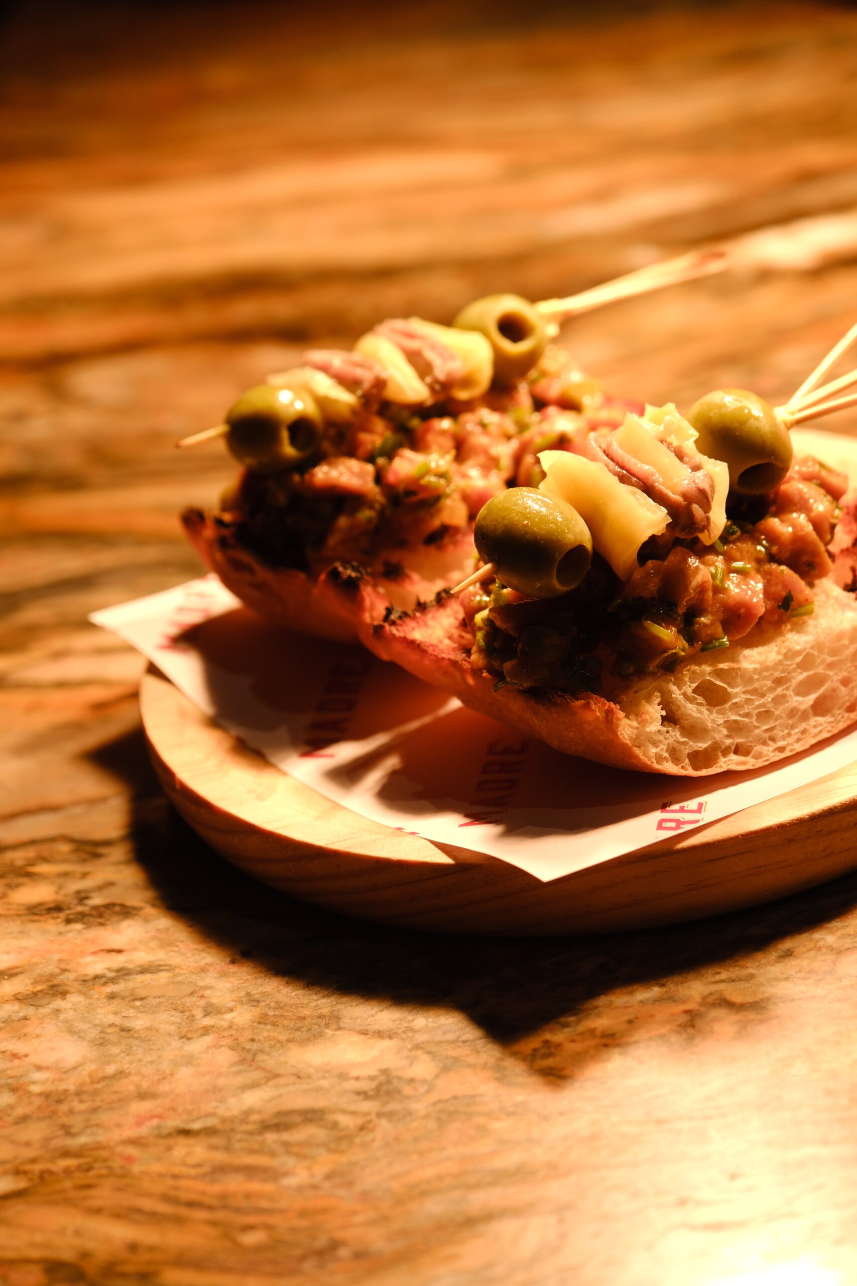 Dining Room features vaulted bodega style arches perfectly set over the wooded wall panels. Guests are invited to dine at a large communal table, cabaret style round dining tables or the kitchen counter overseeing roaring open kitchen, surrounded by ice chilled seafood display, vertical wine cellar and transparent dry aging meat cabinet warmly lit by Himalayan salt block lights. In the evening, the restaurant transforms to a more intimate setting, revealing its moody and sensual character.